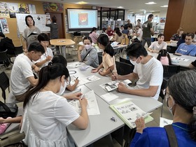 参加者はワークシートにメモを取りながら、日本語サポーターとの対話を通じて理解を深め、最後には「Can-doチェック」で学びを振り返りました。